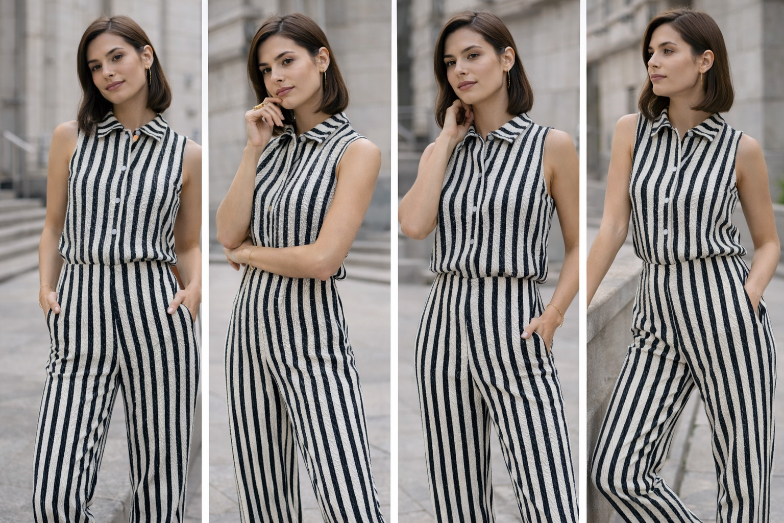 Beige Button Vest Set